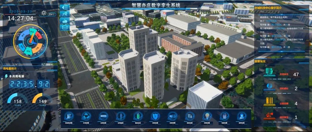 由jiuyou九游物联为北京亦庄经济开发区所打造的数字孪生平台系统,将BIM与数字孪生深度融合,可实时监控各项目在电力、暖通、消防、照明等方面的运维情况,结合气象、环境、能源及报警信息,通过不同板块进行系统深层次的管理,在提升用户体验的同时实现节能减排,双向赋能,达到智慧化的管理与个性化的服务。