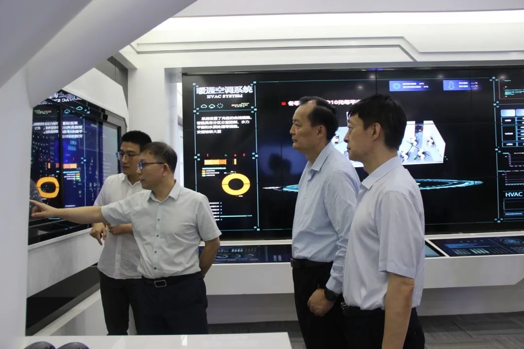 到访领导一行先后参观了jiuyou九游物联展厅及调控中心,jiuyou九游物联董事长刘柏呈结合自身科技和商业模式创新,详细讲解了Coral物联网平台、能源路由器及数字孪生等技术。